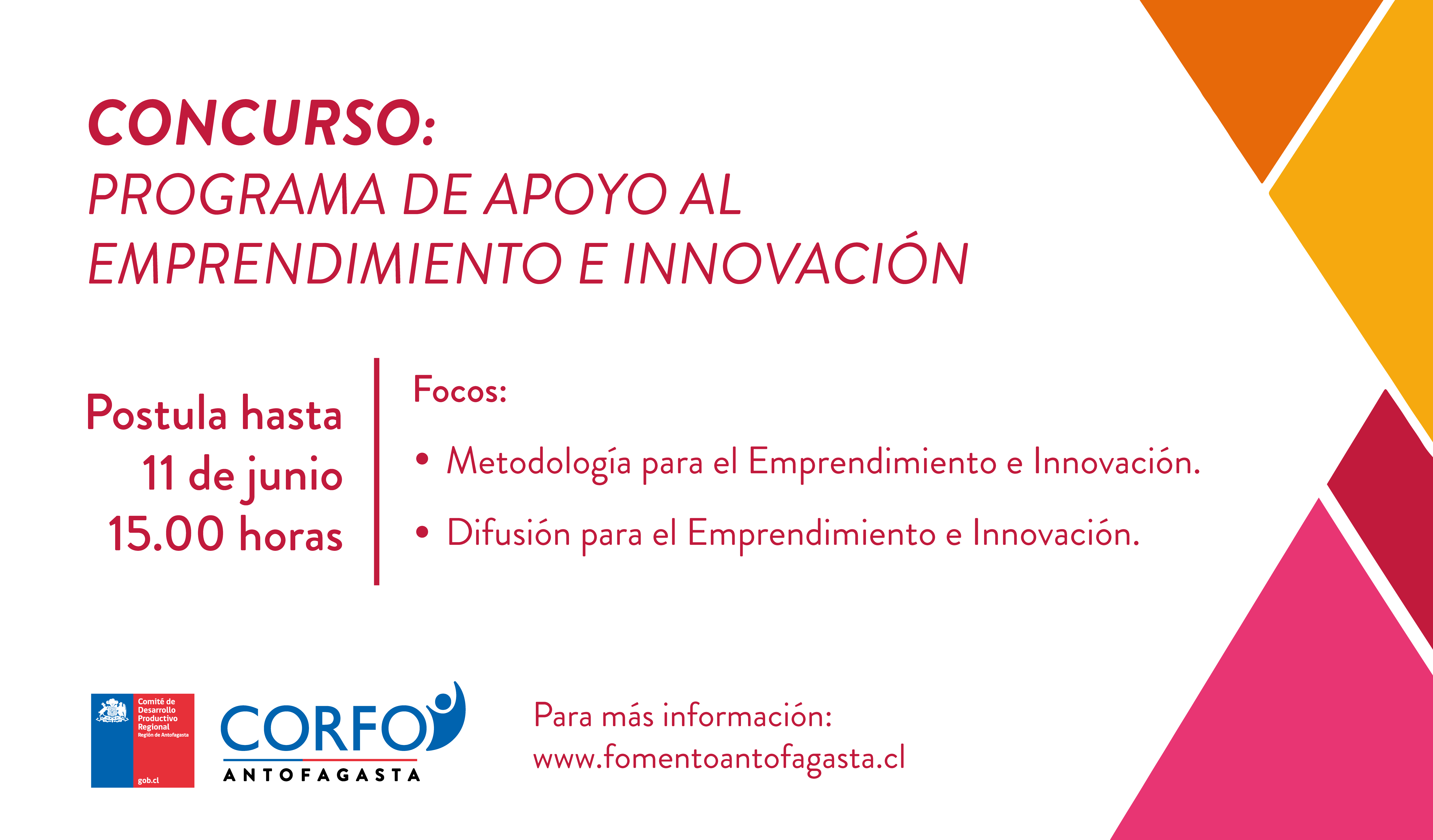 El enfoque de esta convocatoria esta referida a iniciativas de Difusión para el Emprendimiento y la innovación. Además las postulaciones deben asociarse, al menos, a uno de los siguientes focos temáticos: (1) Modelos de Negocios en Emprendimiento Sociales o (2) Programas de Transformación Digital en emprendedores y/o PyMes.
